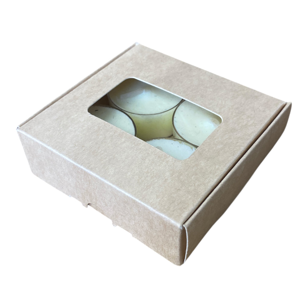 TEALIGHT CANDLE PIP BOX with window for 4 Tealights - Eco Natural Kraft (Pack of 10)