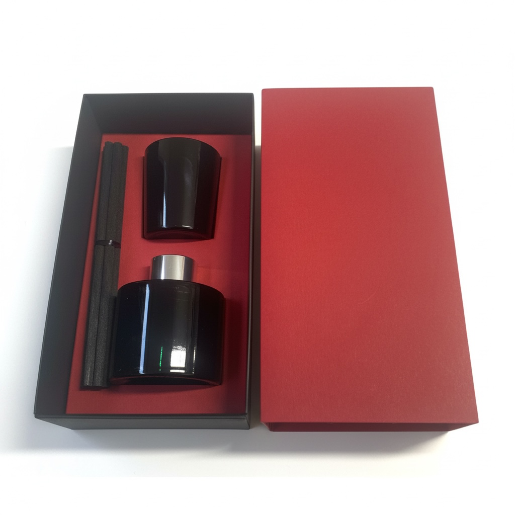 100ml DIFFUSER/9cl VOTIVE CANDLE GIFT BOX - RED/BLACK with RED insert (Pack of 10)